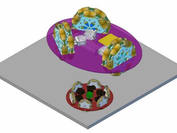 Dos "en proceso" bots se demuestran arriba. Es el más grande un 11,75" por 15,75" oval y las ruedas son 5.5" diámetro. Regulador previsto es un arduino, frambuesa pi o la Junta de desarrollo Freescale ARM Cortex. (La placa amarilla mitad oculta es para una frambuesa pi). El más pequeño bot es 6,75" de diámetro, con ruedas de diámetro 2,00". Previsto es un TinyDuino de pequeño circuits.com. (La pila verde es el tamaño real de cuatro tableros de TinyDuino).