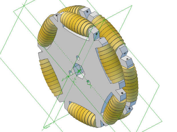 Las Asambleas interiores y exteriores son una sola pieza, con un solo 0.125" láser corte entre ellos. Las ruedas se llevan a cabo junto con tres #2 x 0,375" tornillos. El montaje exterior y centro espaciador tienen agujeros. La parte interior de la Asamblea es aprovechada para el tornillo #2. Puede usarse a sellarroscas para mantener las piezas juntas.