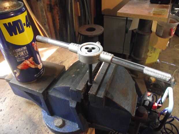 Uso de la amoladora de banco, máquina de la cabeza hexagonal del perno para hacerlo redondo. Cepillo de alambre la cabeza para eliminar cualquier rugosidad aparente. También de alambre de cepillado el hilo para hacerlo más suave para correr la tuerca en.