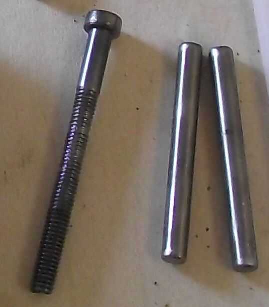 Cortar 6 mm Varilla de 50 mm de largo. Un pequeño bisel en cada uno de los extremos de muela y cepillo de alambre.