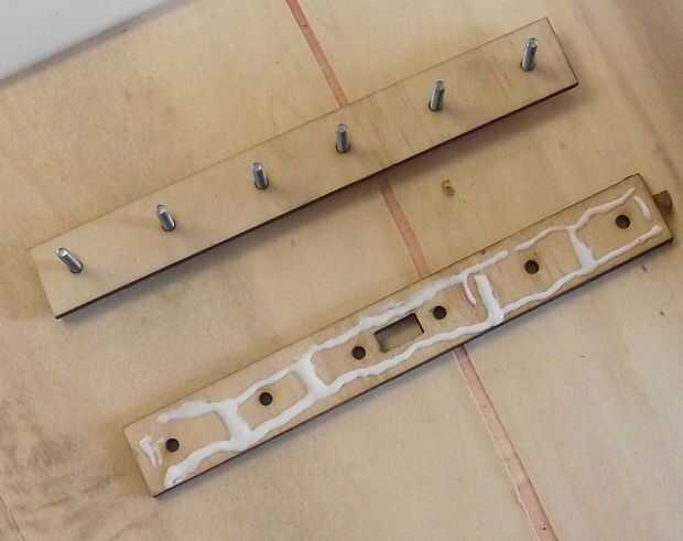 Ajuste cada tornillo con una tuerca, apriete y deje que el pegamento fijar.
