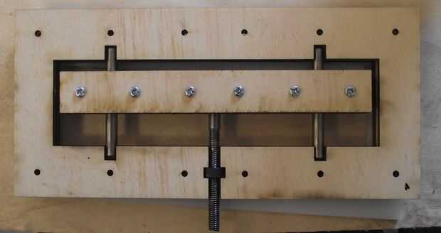 Inserte las barras de guía de la mandíbula y agregar a la pila de piezas base. La tuerca debe conectarse a su nicho en el marco como las barras guía en ellos.