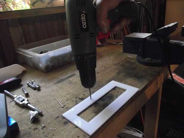 Usé el taladro eléctrico para aprovechar los agujeros - conduciendo la corriente a través y marcha atrás regreso otra vez. Limpiar cualesquiera de las virutas de acrílico el grifo antes de revertir para evitar la fijación.
