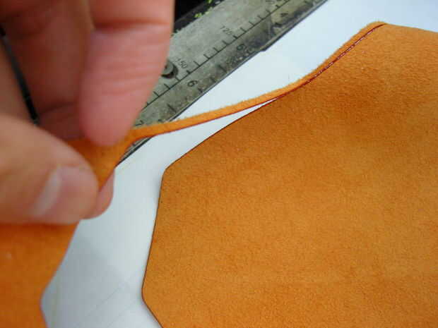 Primero, hice un lote de la pantalla en blanco cuatro protectores. Esto hice cortando una franja de Ultrasuede sólo lo suficientemente ancho para un protector de pantalla y cortadas por todo mi pedazo de Ultrasuede. Esto resultó el ser cuatro protectores de pantalla casi exactamente. Alimenta un extremo en el cortador del laser, corte un protector, cortado el parpadeo y luego pasó más Ultrasuede.