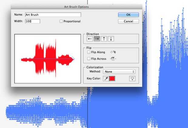 5. abrir "youraudiodata.svg" con Adobe Illustrator, forma de onda Seleccione con la herramienta Selección directa, selección > invertir la selección, borrar otras partes. Añadir la forma de onda de arte Brush (figura), dibuja un círculo y aplicar el pincel al círculo (figura).