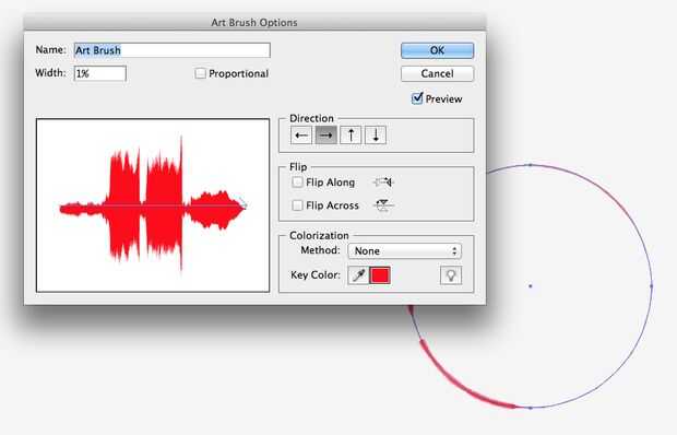 6. establecer un ancho círculo alrededor de 0.05-0.2pt. El valor define la amplitud (es decir, volumen) de la forma de onda.