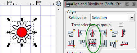Una vez que ha dibujado un engranaje, más probable es que tendrá un orificio central. Para obtener un agujero centrado en un engranaje, extraer el engranaje y dibujar el círculo para el taladro. Seleccione tanto el círculo para el taladro y el equipo y vaya a objeto -> alinear y distribuirán. Haga clic en los iconos que dicen 'Center en el eje Horizontal' y ' horizontal '.