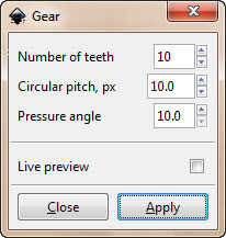 Ahora la diversión parte... Para poner un engranaje en su dibujo, uso extensiones -> Render -> equipos. Cuando hice este reloj usé un campo circular de 10 y un ángulo de presión de 10. Entonces varió el número de dientes para establecer el tamaño del engranaje. Como utilicé 10 y 10 para paso circular y el ángulo de presión, ajuste los engranajes! Por favor, ¡ anímate y pruébalo!