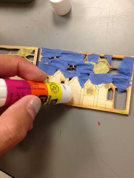 Después de que el papel se llena todos los agujeros, unir las dos piezas por pegar la madera que no tiene el papel de tejido en él.