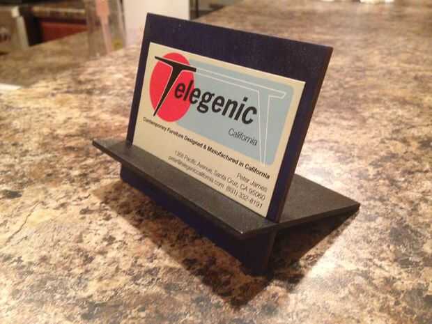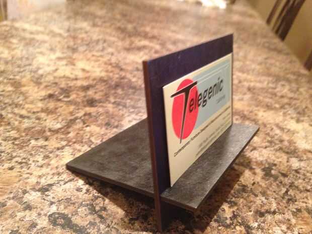 Una vez que estaba feliz con mi diseño en el archivo de Illustrator, yo "impresa" a la cortadora láser y deje que la máquina haga el resto. Lamentablemente, mi idea original de tener el pedazo más grande del dispositivo de seguridad con un pedazo más pequeño estaba desequilibrada y no de pie sobre su propia. Por lo tanto decidí cambiar el diseño por dos de los pedazos más grandes de la impresión. Este cambio funcionado hacia fuera mejor que lo que estaba pensando originalmente y puede ser había orientado algunas maneras diferentes dependiendo de su preferencia para cómo el titular realizará las tarjetas de visita.