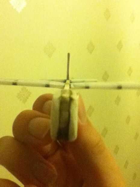 Usando los puntos centrales como dirección, pegar el ala principal en la ranura en la parte superior del fuselaje. Utilizar un bastidor de soporte para asegurarse de que las alas no pierden alineación mientras está secando el pegamento.