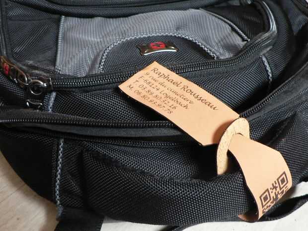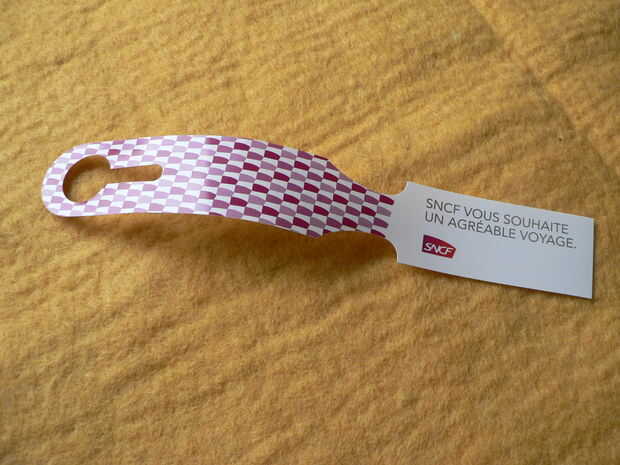 Al igual que en Francia hay que poner etiquetas en cada equipaje que se toma con durante el transporte en trenes, no estaba satisfecho con un ready-made, generalmente envien escrito en una etiqueta de papel.