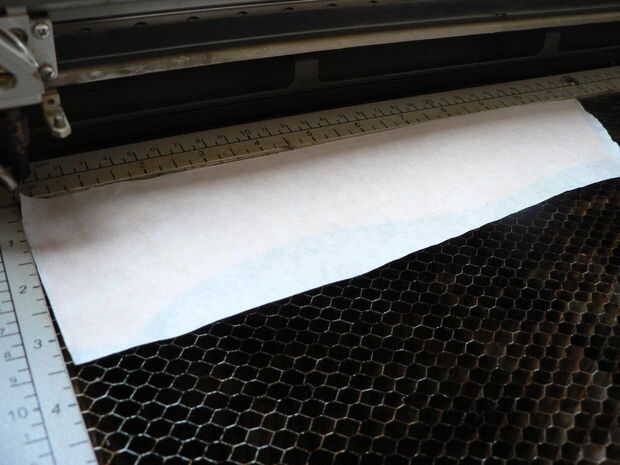 Para evitar manchas de humo desagradable, generalmente uso papel de enmascarar (la que hace que el cuero parezca blanca en las fotos en la máquina del laser). El único inconveniente de este método es cuando tienes que pelar la cinta después de grabado: pequeñas piezas son (relativamente) difíciles de quitar...