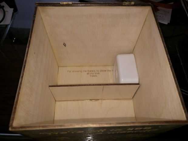 Por último, usted no puede decir de las fotos, pero realmente pegan las piezas antes de rociar un par de capas de acabado transparente/brillante. Esta fue mi primera vez aplicar acabado madera y no recomiendo esto si quieres una capa uniforme. En su lugar, pegar las piezas después de haber aplicado una o dos capas de acabado/mancha. También atribuyo el movimiento musical a su trozo de madera antes del montaje, para facilitar las cosas. Utilice pegamento del gorila o el adhesivo de doble cara que tengas y pegamento de madera de la madera sí mismo.