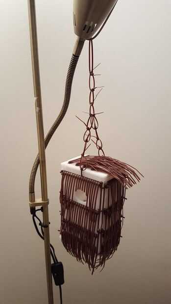 Finalmente añadí una cadena de abrazaderas de plástico para colgar de. Entonces encontraron nuevo hogar de algunas aves su casa en un árbol en mi jardín y se realizaron.