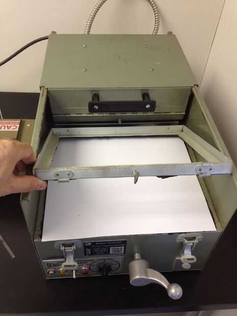 En términos generales, en primer lugar a ubicar el molde en la plataforma perforada. Si la plataforma sube y baja, bajar la plataforma. Si el marco sube y baja, levantar el marco. Inserte y sujete el plástico en el marco.