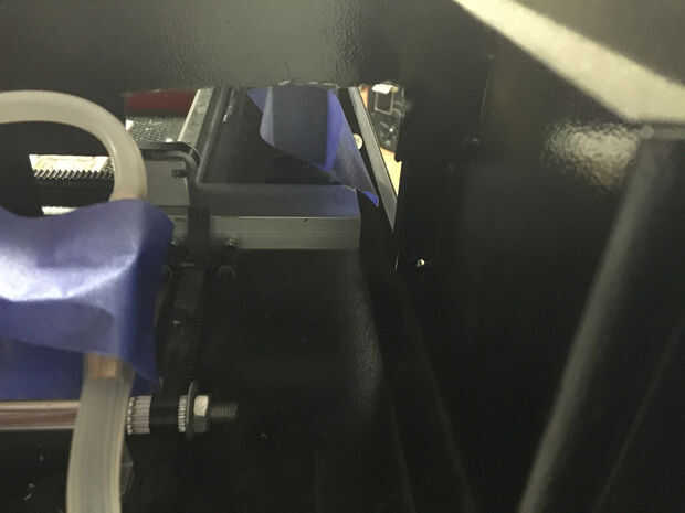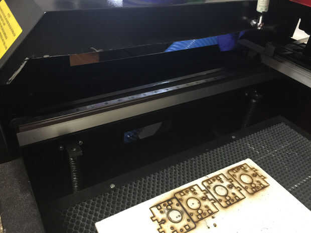 Aún con este bajo de montaje todavía tenía que hacer algunos cortes de algunos de los mejores para dar lugar a la viga. Corté la parte superior de aproximadamente 2" donde el rayo golpea el espejo 1 y pasa a la segunda. Entonces corte el interior superior parte de 2" a lo largo del eje x, por lo que el rayo podría rebotar el segundo espejo a la cabeza sin obstrucción.