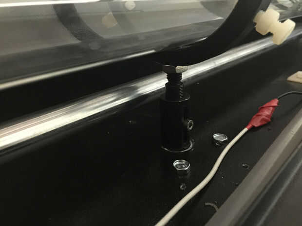 El diseño de esta herramienta de corte no tiene mucho espacio para el tubo de diámetro de 80mm de altura por lo que tenemos que conseguir el soporte para el tubo tan bajo como puede ir y obtener todavía alrededor de la barra del eje y que se extiende a lo largo de la parte posterior. Las mejores monturas que encontré para esto son en lightobject.com y necesitarás dos de ellas. Si nos fijamos en la foto notarás que incluso entonces no eran lo suficientemente bajos como para taladrado y había montado desde la parte inferior.