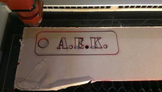 Después de laser corte el llavero con las iniciales, había los había eliminado y funcionó nuevamente el archivo para cortar el forro azul.