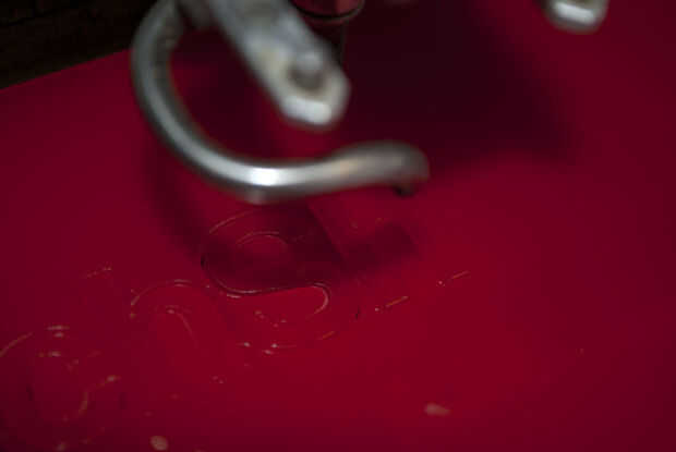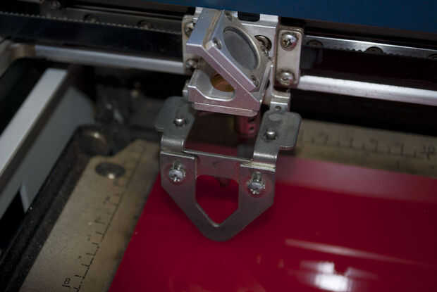Luego, asegúrese de que el foco se ajusta correctamente. La guía de atención apenas debe tocar la parte superior de acrílico (véase abajo).