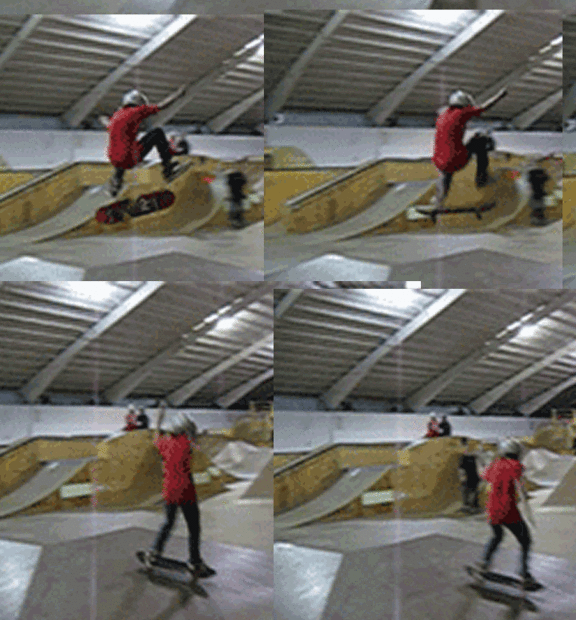 Los cuadros en el tamaño correcto de imprimir y transferir la animación cada mano en una hoja de papel: cada marco en otro color (ver foto). Seguramente es de una ventaja cuando usted sabe cómo trabaja física y cuerpos reaccionan en impacto, actio y reactio etc, etc, pero un cuadro dibujado en 20 segundos en la oscuridad con un puntero láser no ofrece mucho lugar para más detalles de todos modos.
