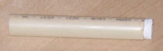 Ahora vas a necesitar tu tubo de PVC. Mi PVC la tubería en alrededor de 10CM de largo. Os adjunto una pieza de plástico en él por lo que se atasca en el orificio del láser de bolsillo. Básicamente cualquier cosa dependiendo del tamaño del agujero en la demostración del laser de bolsillo puede utilizar para atraer el tubo de PVC. Mientras no se caiga y puede soportar el peso de su láser porsupuesto.