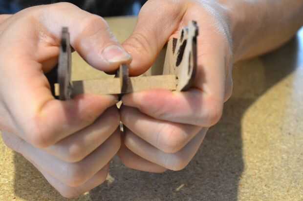 La pieza interior mas grande se colocará por en medio de las otras dos internas con la ayuda de los espacios para quede justo y no se mueva demasiado.