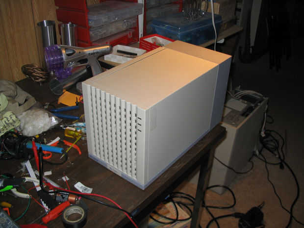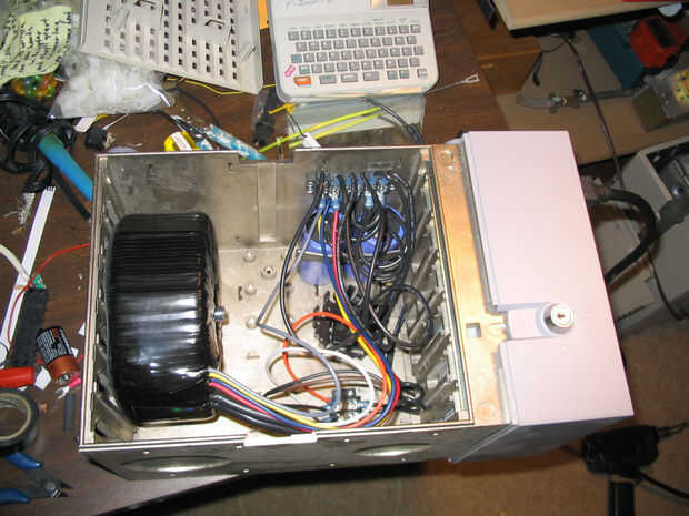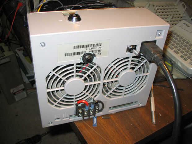El suply emplea un circuito de puente de onda completa y en un canibalized caja de disco duro de sol. Su una bonita caja que viene con los ventiladores y una fuente de alimentación de 5VDC. La mayoría del cableado se hizo con 14 calibre cable, terminales y bornes de rosca. Después de la terminación miré la tensión en mi osciloscopio y no había absolutamente ninguna ondulación.