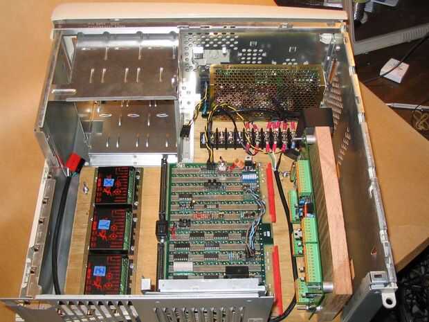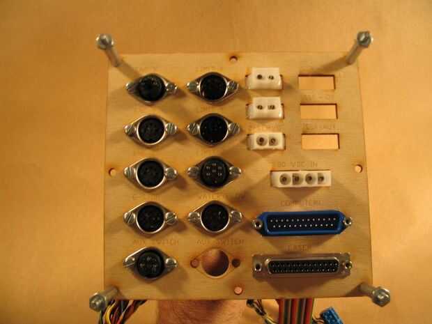 Controladores de motores anteriores que he hecho han tenido un grave defecto, todos los componentes fueron montados directamente en su recinto. Esto hizo reparación de circuito, así como instalación y desinstalación de todos los componentes muy incómodo. Para este controlador, comencé por montar los componentes en un tablero de madera contrachapada. La Junta tiene patas de goma y hace mucho más fácil al servicio de todas las piezas en mi banco. El tablero encuentra un caso de reciclado de computadoras, que también tiene un agujero en el lado de un ventilador. Los puntos del ventilador directamente sobre los conductores del motor gecko. Este láser corte placa conector se hizo con el primer diseño de la placa utilizando las dimensiones de los conectores encontrados documentación obtenida de digikey. El archivo DXF resultante fue enviado a artes que produce la placa por láser corte 1/8 de pulgada gruesa la madera contrachapada. Irónico que estoy Out-sourcing a otras tiendas de láser para hacer algo espero hacerlo eventualmente en mi sótano. Los cables que van a la forma de la placa de conector lo que me refiero a como la red neuronal, una extensa colección de cables y conectores enganche a todos los componentes internos. Una vez conectada a la red de los nervios a los componentes internos de la placa se enfrenta fuera de la caja y se retranquea ligeramente para permitir que todos los conectores de cableado a ser protegidos de conseguir golpeado alrededor.