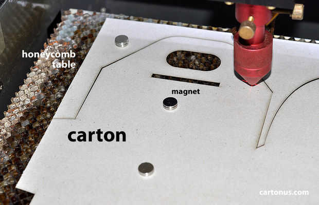 Fijar cartón por imanes en mesa de peine de miel del grabador del laser.