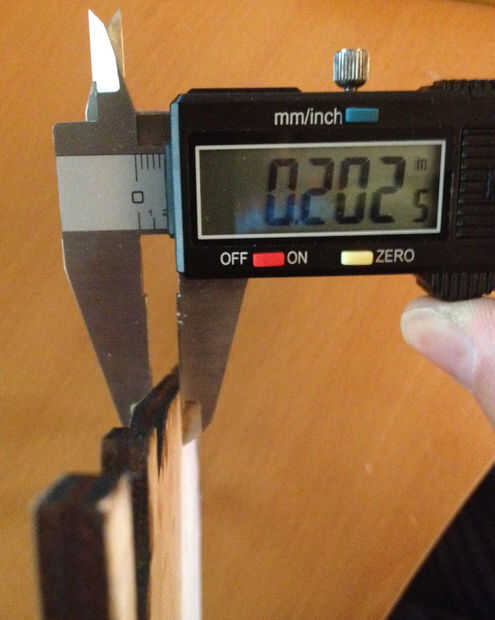 Tenga en cuenta que el ancho de corte y la línea del corte láser dependerá de su máquina y su punto focal, por lo que este paso requiere a menudo un poco ensayo y error antes de ir al modo de producción. Me tomó dos cortes de prueba con el cangrejo para obtener "lo justo". Para guardar el material, puede hacer el siguiente paso con una pequeña plaza de material en lugar de su gran diseño.