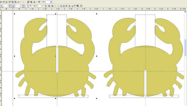 Hacer cajas idénticas a través de la parte inferior de cada forma que usted quiere hacer una superficie plana. Además, dibuja un rectángulo en la parte superior (en este caso entre el estomáticos pellizcos) para hacer la vela a sentarse sobre una superficie plana. Cuando estos se aniden, que van a hacer una forma más, y formas más a menudo se sientan más sólidamente con menos superficie de contacto, así que mantener que en mente cuando hagas este paso. Por ejemplo, los cangrejos probablemente se sentarían más sólidamente en sólo los scuttlers posteriores que los scuttlers y caparazón como lo he hecho aquí.