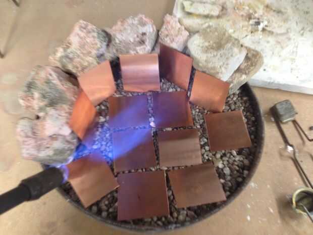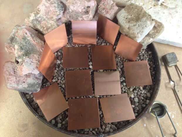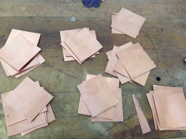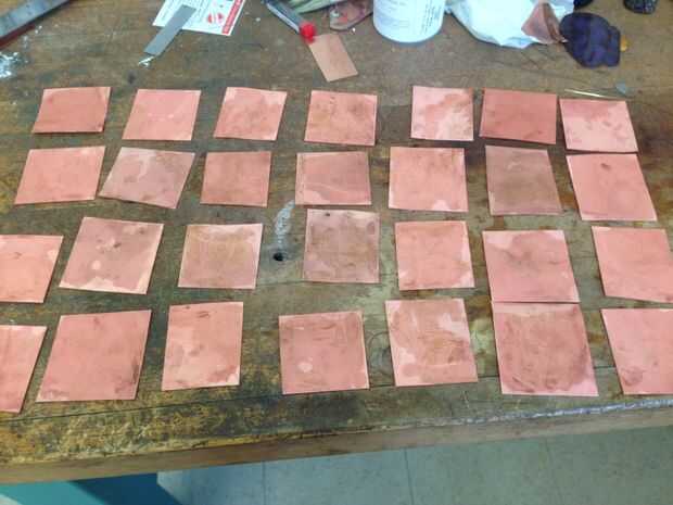 Y aquí tenemos nuestro metal todo a secar! 30 plazas de cobre: corte, recocido y listo para.