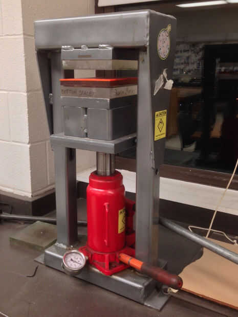 Formación de metal adecuadamente en la prensa hidráulica es un arte a sí mismo. Para una explicación más completa, consulte este gran tutorial de grabación en relieve. Hay también un número de Instructables en la construcción de su propia prensa hidráulica asequible, que puede ser una inversión digna si esto coge su fantasía. Por ahora, estoy usando la prensa hidráulica en mi tienda de joyas de Universidad - está un poco desvencijado y el manómetro no funciona, pero lo hará el truco por ahora.