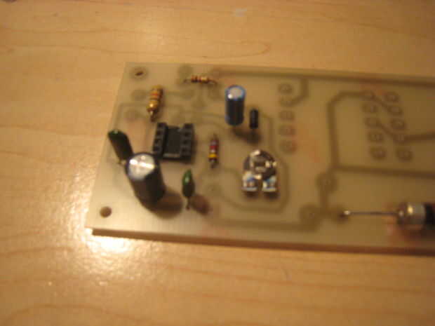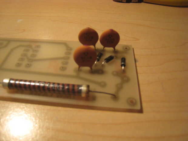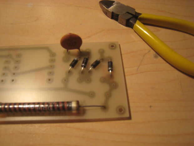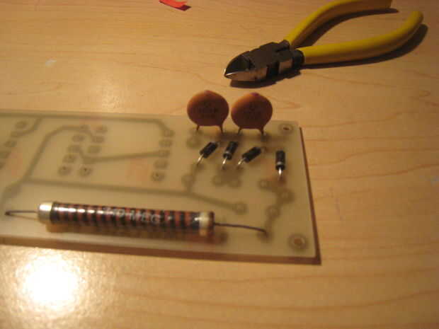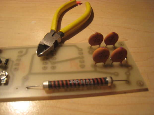 Los condensadores de Discap son últimos, C7, C8, C9, C10, C11. Van en el lado derecho del tablero. Una vez más, estos no están polarizados.