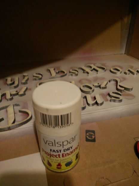 Spray en el interior (en una habitación bien ventilada, de utilidad), hice un pequeño stand de una vieja caja de cartón para mantener tanta pintura contenida posible. Puertas/ventanas abiertas y un ventilador de techo sobre todo poder ayudar con el proceso.