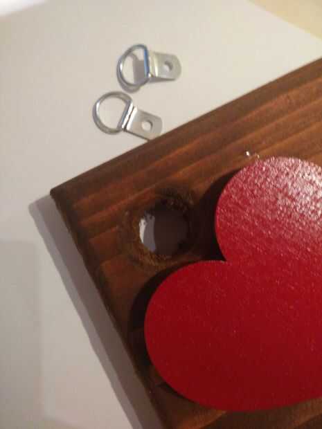 Una anilla atornillada a la parte de atrás (cerca de los agujeros) significa un alambre podría añadirse si ayuda adicional es necesario para el peso, sino también para proporcionar un accesorio permanente par a colgar el cartel en el país.
