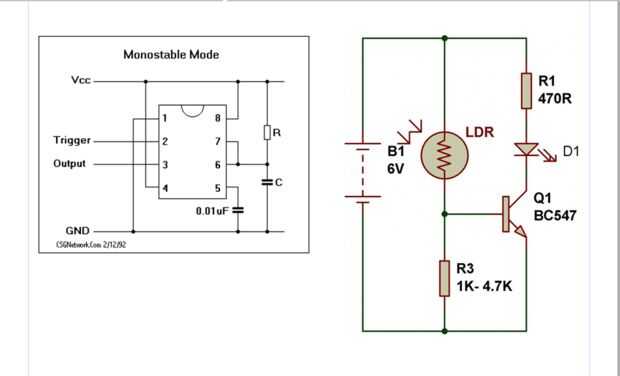 Paso 1: Utilizar el modo monoestable del 555 temporizador y LDR circuito