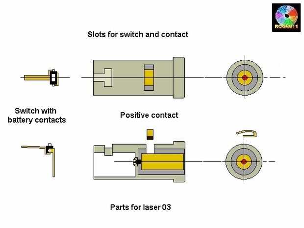 Otra ranura se presentó para que un contacto podría soldarse en la carcasa del módulo láser para presionar contra el tubo de latón, completando así el circuito.