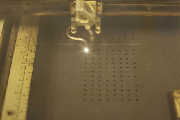 La máquina que utilizamos es un láser de CO2 de Epilog Helix 45W que puede cortar diseños hasta 24 "x 18".
