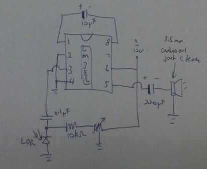 El receptor funciona esencialmente la manera opuesta, con el láser sustituido por una salida de audio y entrada de audio jack sustituido por la resistor(LDR) dependiente de luz. La LDR variará la cantidad de corriente (a través de la resistencia) dependiendo de la intensidad de la luz que recibe. La corriente se introducirá en el LM386 que amplifica la corriente eléctrica y la convierte en audio.