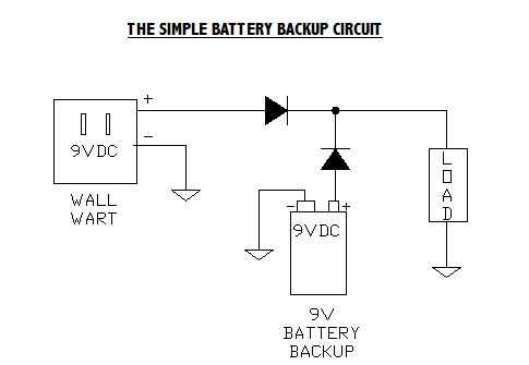 Por último, el circuito de respaldo de batería. Si tuviera más tiempo, habría utilizado una batería de respaldo en este circuito. Esto impediría la el LS7222 de perder poder y va a por defecto las calibraciones de código debe salir la energía. También evitaría que el sistema sea desarmado un intruso tenga alambre tijeras! Voy a darle una breve descripción de este circuito. Como se puede ver, tenemos un transformador de pared que es salida 9-10v, y una batería de 9v, que es la salida 9v. Contamos con un diodo de bloqueo que actúa para bloquear el voltaje desde el puerto de la batería (+) entrada por el puerto de pared transformador (+), y otro bloqueando la (+) voltaje del transformador de entrar en el puerto de la batería (+) de la pared. La tensión dominante potencia la carga. Cuando el dominante fuente muere (el transformador está desconectado), la batería asume el control, y la carga será ninguno el más sabio. Si desea mantener el circuito de respaldo de batería en sólo en determinados momentos, podría agregar un interruptor entre el puerto de positivo (+) de la batería y el ánodo del diodo.