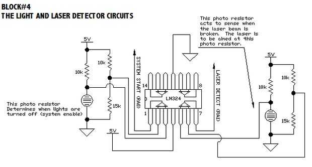 2) ya que estoy usando resistencias de la foto, el circuito de detección de láser no sería capaz de diferenciar entre la luz de la habitación y el láser, y el sistema se confunda.