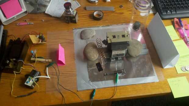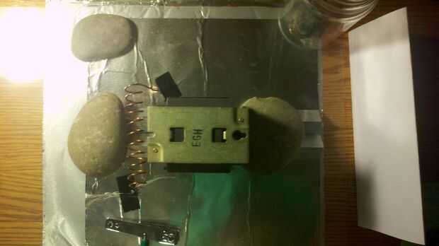 4. Coloque pesos en las partes que están sentados en el láser (es decir. los electrodos). Esto ayudará a mantener buen contacto y evitar la formación de arcos desagradables. He utilizado un relé industrial y algunas rocas que yo tenía por ahí, pero por supuesto nada pesado funcionará.
