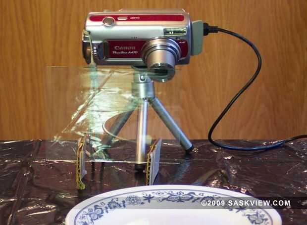 Tenga en cuenta que muy probablemente obtendrá leche salpicada en la cámara y la lente, por lo que se debe colocar la placa de vidrio del almacén del dólar delante de la lente para evitar esto. Si la placa de vidrio está frente del flash puede reflejar en la lente, causando reflejos no deseados.