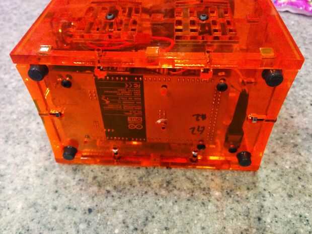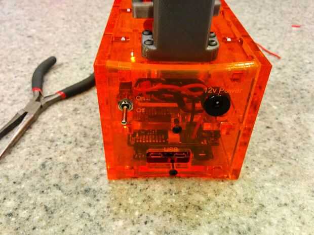 Puede también asegurarse de que el poder interruptor funciona insertando el 2Amp 12v adaptador de CA (BOM #33) 5.5 en el puerto de alimentación hembra. (BOM #23). Si usted optó por escoger 4 x patas de goma (que es opcional pero ayuda con nivelación) adelante y colocarlos en las 4 esquinas en la parte inferior del resplandor. (BOM #34)