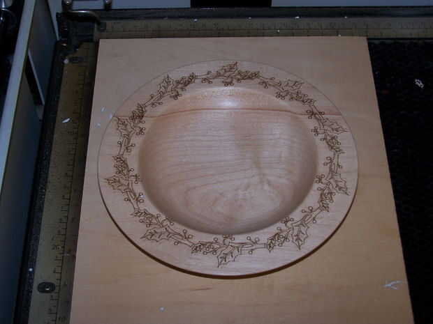 Agregar un patrón grabado en el borde de un cuenco de madera dada vuelto puede añadir a la belleza natural del tazón de fuente y prestar una sutil indicación de su finalidad para el tazón de fuente, en este caso; envuelto Navidad de caramelo. Había grabado este tazón de fuente en Techshop,www.techshop.ws San Jose, CA.