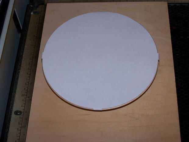 Tomar una de las máscaras de papel y doblar las cuatro pestañas abajo y coloque la máscara sobre el recipiente. Presione "reset" en la consola de láser para volver que el láser a la posición "base" previamente establecidas. Preparar para imprimir su patrón, pero asegúrese de que el poder esté bajo sistema. Sólo desea trazar una imagen en el papel, así que aumentar la velocidad y corte la energía. Si no ves una imagen en el papel después de la primera "run", aumentar la potencia, o despacio un poco y vuelva a intentarlo. Recuerde, la idea es comprobar su patrón antes de empezar a quemar madera.