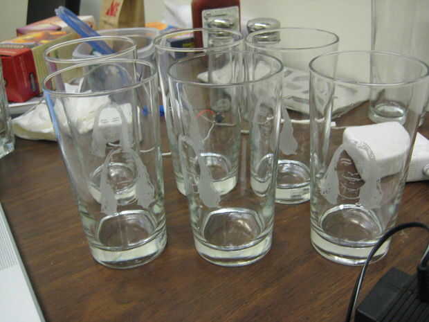 Lo bueno de grabado de vidrio con un cortador del laser 75 vatios IR es la precisión y el detalle. Soy capaz de obtener imágenes muy exactas en una superficie redonda sin muchos aspavientos. Recomiendo tirar su impresionante corte de láser de Epilog salen del armario y hacer lo mismo.