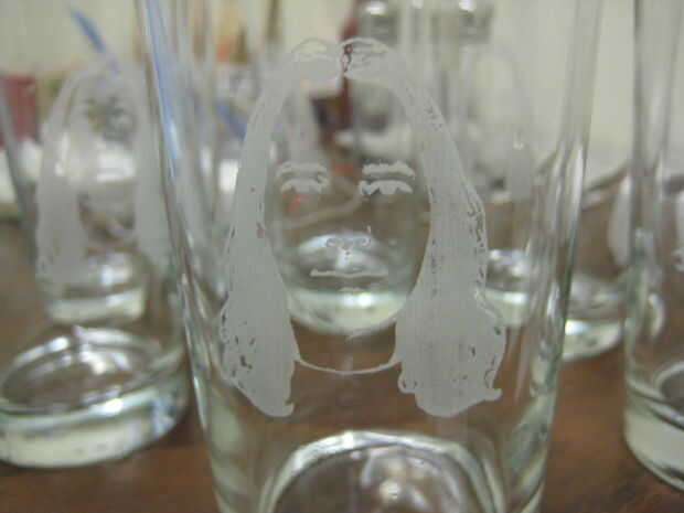 hace un tiempo me laser grabado al agua fuerte mi cara en un conjunto de vasos con la esperanza de weirding a mis nuevos compañeros de piso. Ellos no parecen darse cuenta. O, al menos, si notan, nunca dijeron nada. Cualquiera que manera, nunca despertó la conversación estaba esperando (es decir, "¿por qué tienes tu cara en tus gafas?"). A pesar de todo... estas gafas hacen una excelente adición a cualquier hogar.
